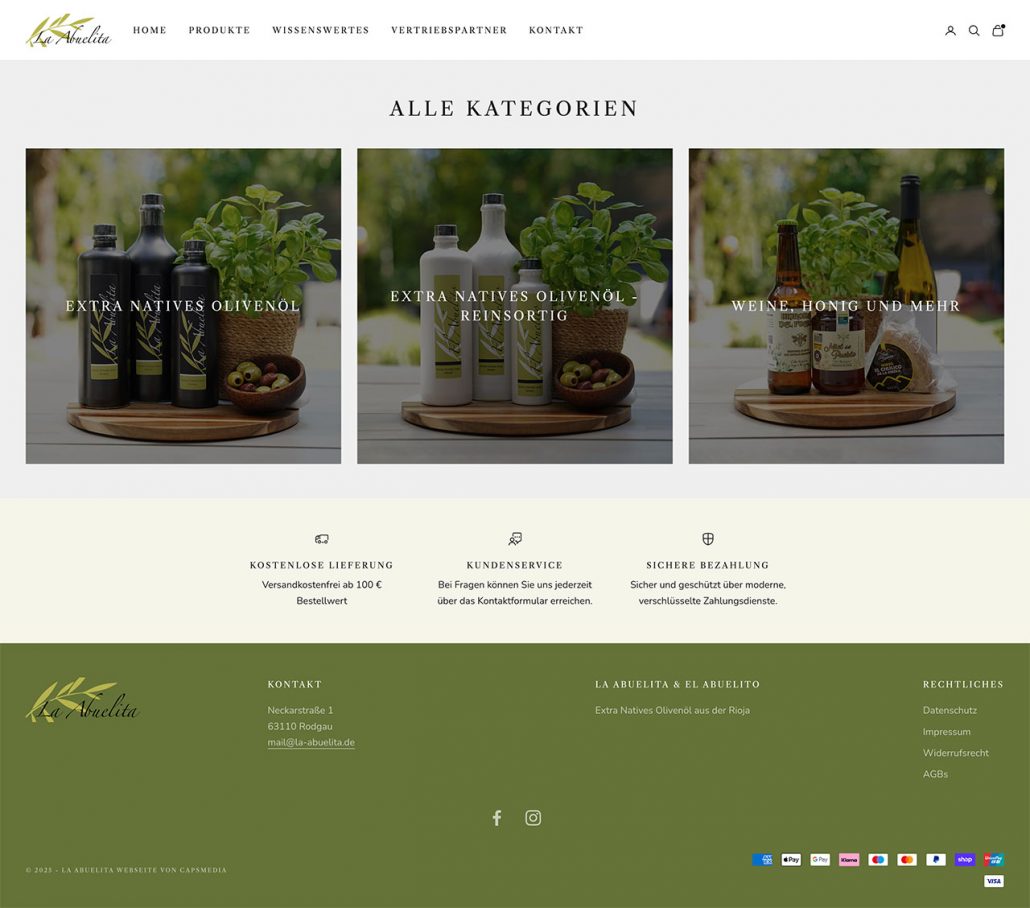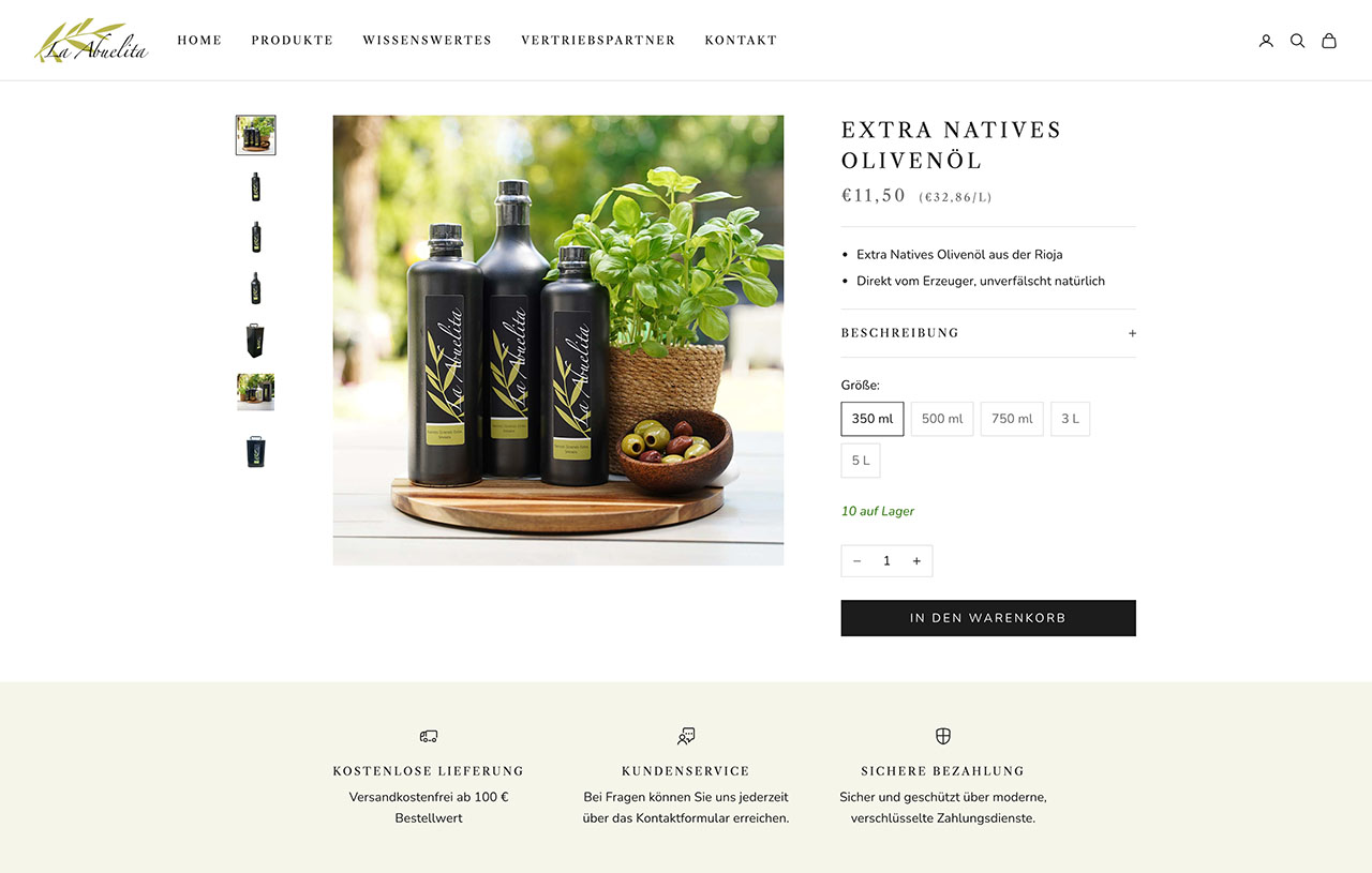 Entstanden ist ein übersichtlicher und stilvoller Onlineshop, der auf allen Endgeräten reibungslos funktioniert. Das klare Design und die hochwertigen Bilder transportieren die Werte der Marke und machen den Einkauf einfach und inspirierend. Der Shop trägt dazu bei, den Verkauf von Olivenöl und weiteren Spezialitäten zu fördern und die Online Präsenz auf ein neues Level zu heben.