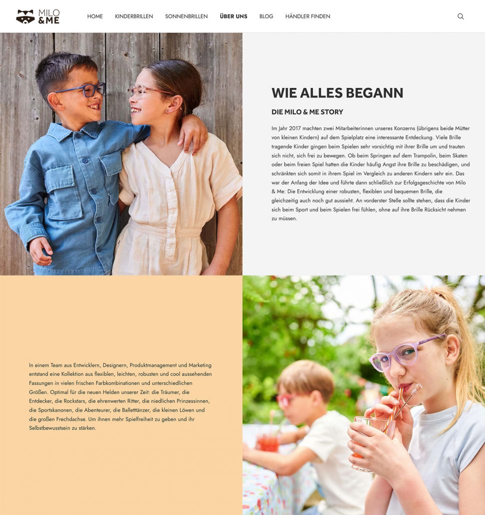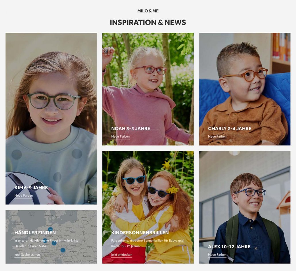 Entstanden ist eine moderne Website mit klar strukturierten Kollektionen, unter anderem nach Altersgruppen gegliedert. Der Store Locator ist einfach zu bedienen und bietet Nutzer:innen schnellen Zugang zu Händlern vor Ort. Die klare Gestaltung, kombiniert mit den praktischen Filtern, sorgt für eine zeitgemäße Präsentation der Marke und eine benutzerfreundliche Produktsuche.