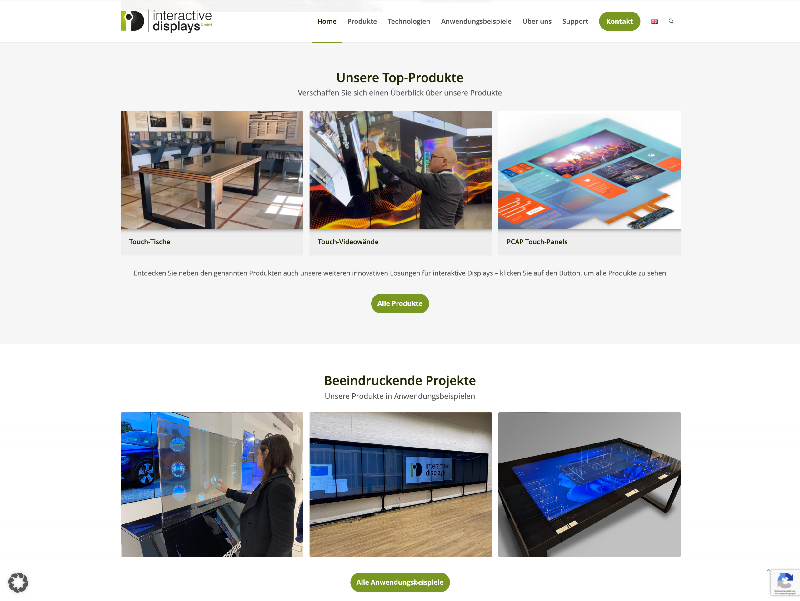 Scrollbarer Screenshot der Startseite
