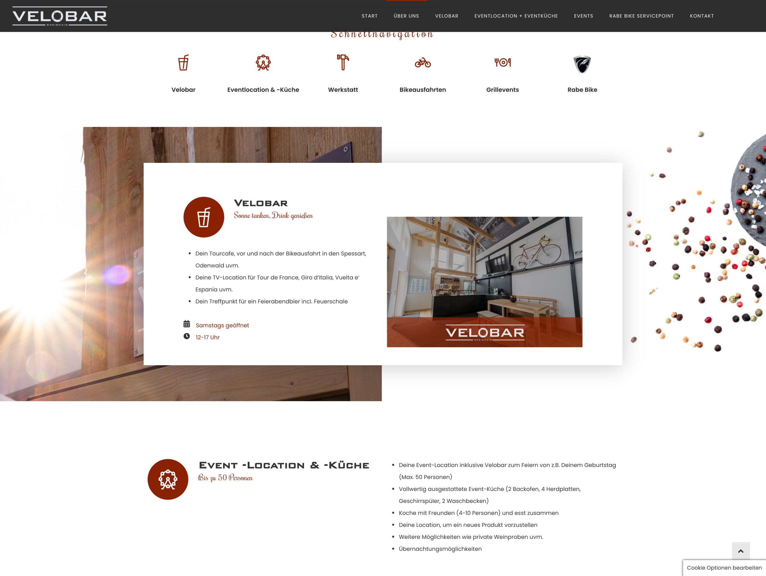 Ziel war die Entwicklung einer einladenden, informativen Website, die die verschiedenen Facetten der Velobar – unter anderem Café, Event-Location mit Küche, Werkstatt und Bike Events übersichtlich darstellt. Dabei sollte sowohl das Gemeinschaftsgefühl als auch die vielseitige Nutzung der Location vermittelt werden.