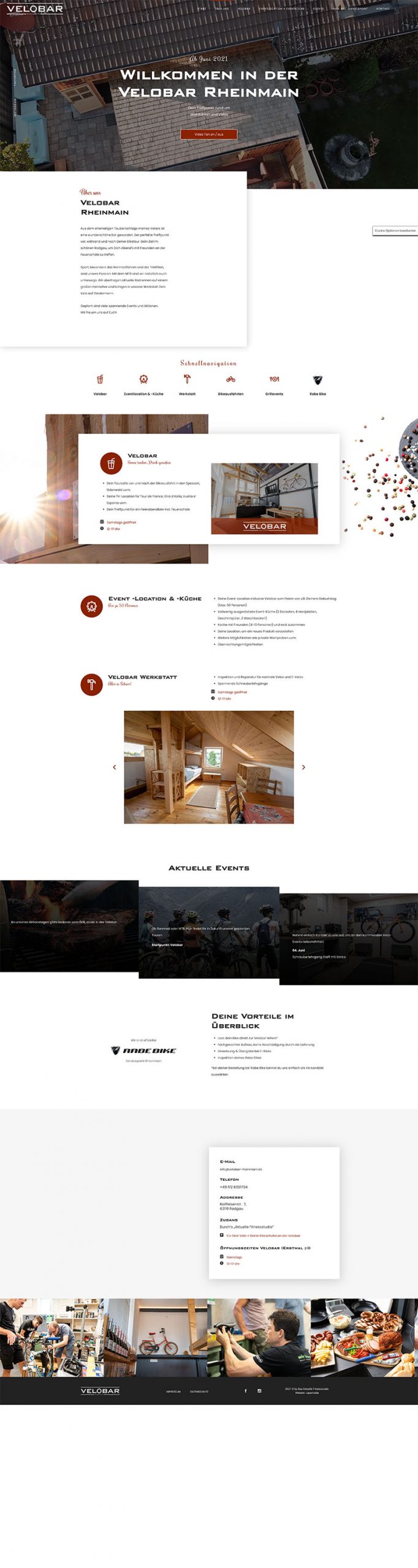 Adams Peak übernahm Konzeption, Gestaltung und technische Umsetzung der neuen Webpräsenz. Besonderer Wert wurde gelegt auf klare Navigation zwischen Bereichen wie „Über uns“, „Velobar“, „Eventlocation & Küche“, „Werkstatt“ und „Events“. Visuelle Elemente und Texte sollten Atmosphäre und Erlebnis transportieren z. B. durch Bilder der Bar, der Werkstatt und Veranstaltungen. Zudem wurden Serviceangebote wie Reparaturen und Schrauberlehrgänge prominent integriert.